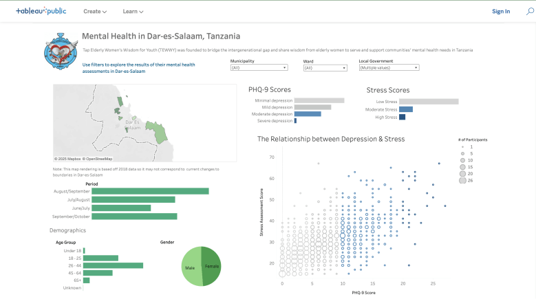 As part of Viz for Social Good, a community of volunteers that supports various causes with data visualization, I participated in this project to help a nonprofit in Tanzania, Tap Elderly Women’s Wisdom for Youth, visualize demographic and mental health data that they collected. Click here for more details on the project requirements.